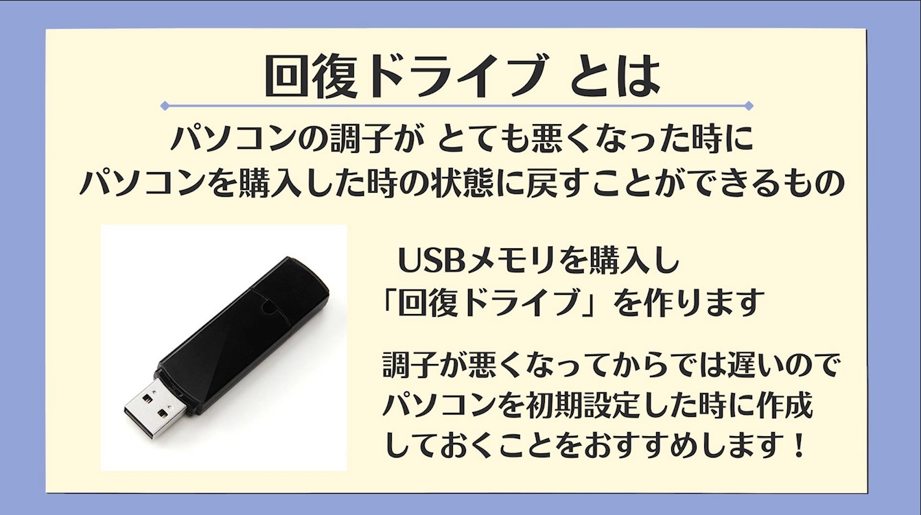 以下に32GBのUSBメモリを使用して回復ドライブを作成する際の関連情報について詳しく説明します。