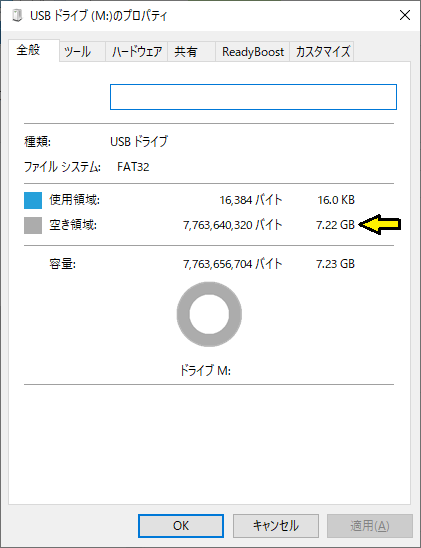USBドライブの容量要件と WINDOWS 10のバージョン
