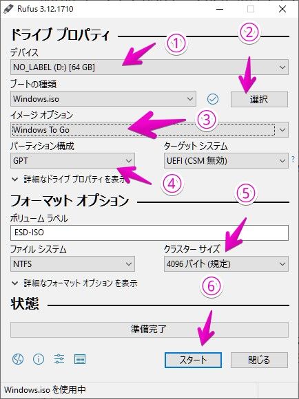 Rufusを標準のWindowsにインストールする手順は以下の通りです。