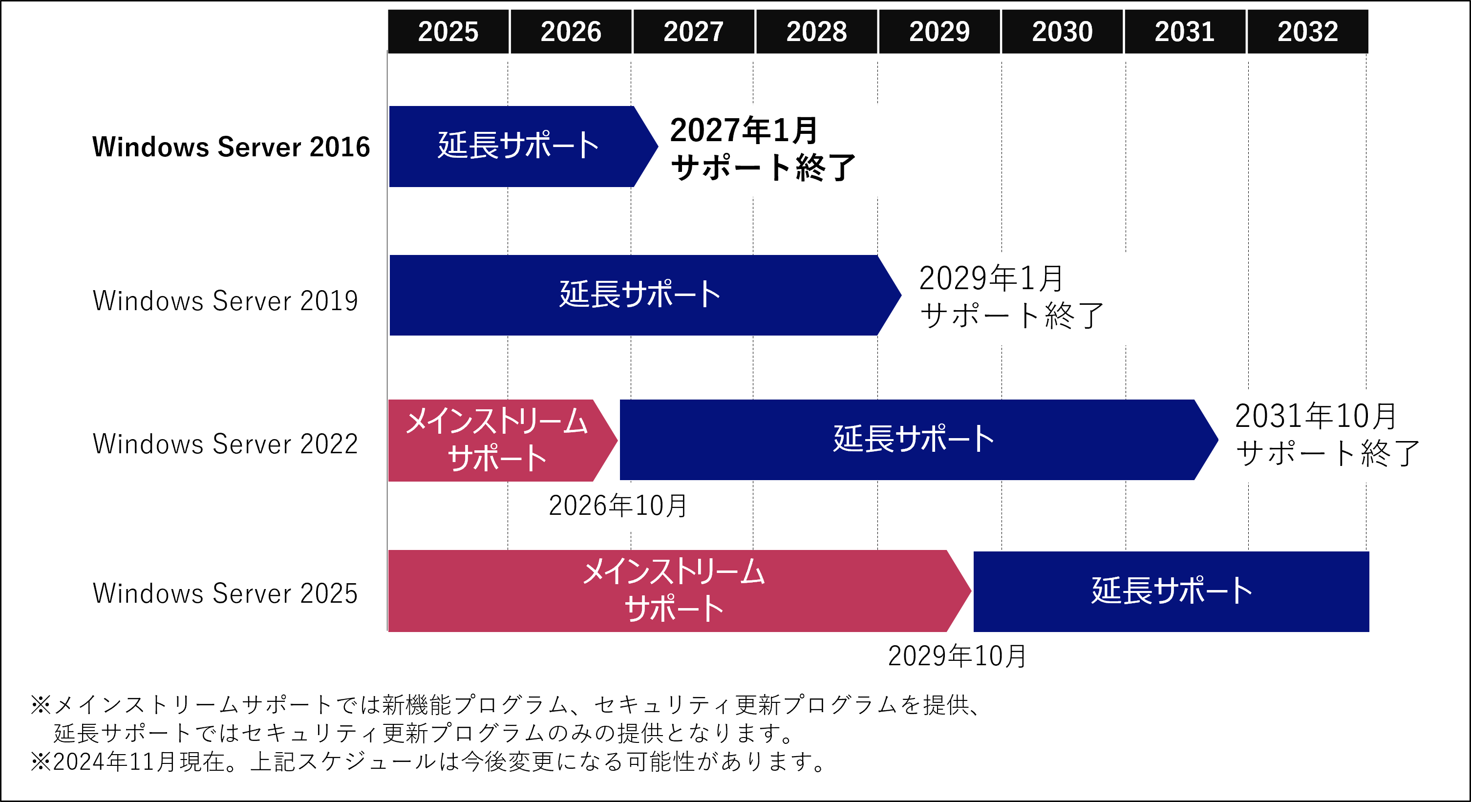 - 延長サポート期間は有料の更新プログラムが提供されます