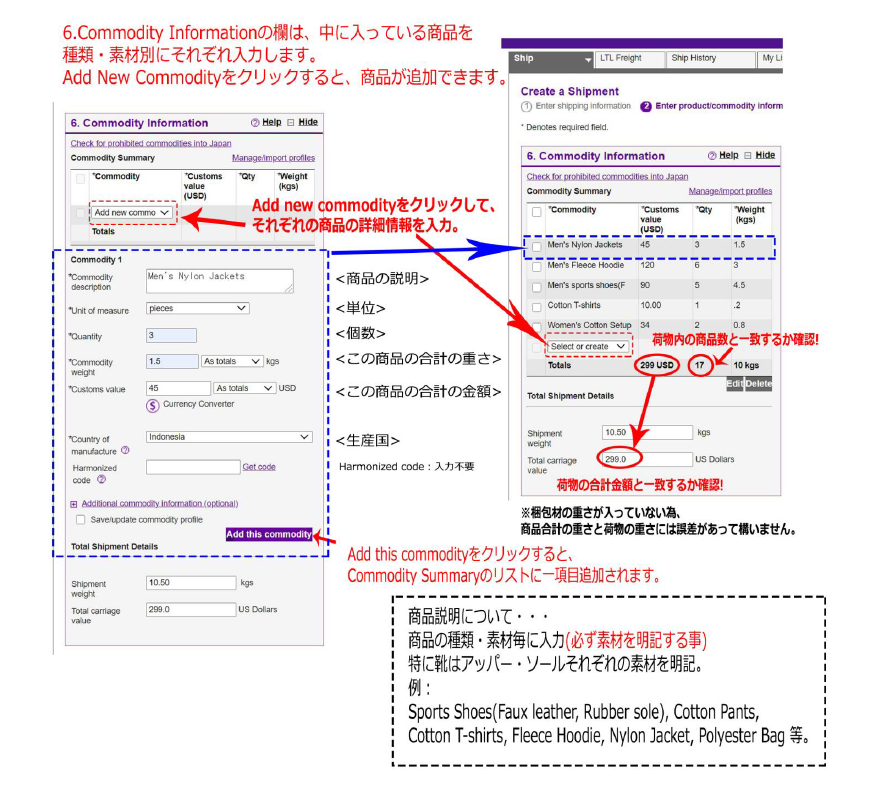 - 各パッケージに 明確に コマーシャルインボイスを添付してください。