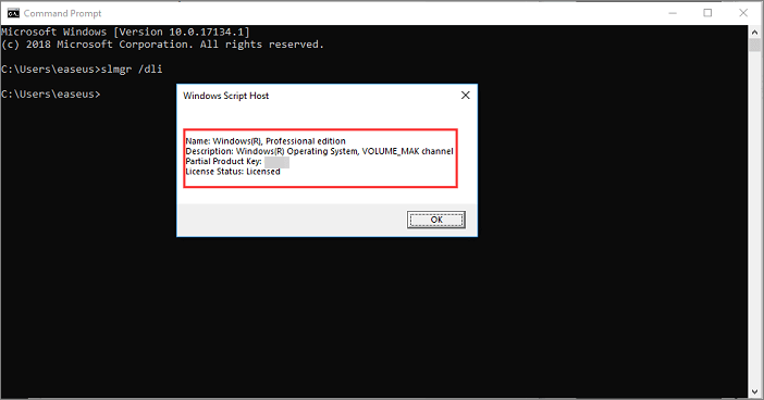 - 認証が成功した場合は、slmgr.vbs /dliコマンドを再度実行して、新しいライセンス状態を確認します。