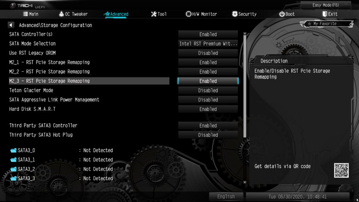 - UEFI BIOSの「Advanced Mode」または「OC Tweaker」タブを選択します。