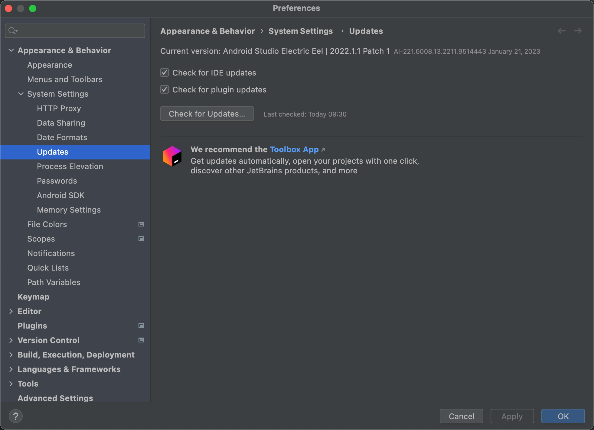 - NDK のバージョンを確認し、最新バージョンに更新します。