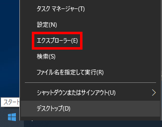 - スタートメニューを右クリックし、「エクスプローラー」を選択します。