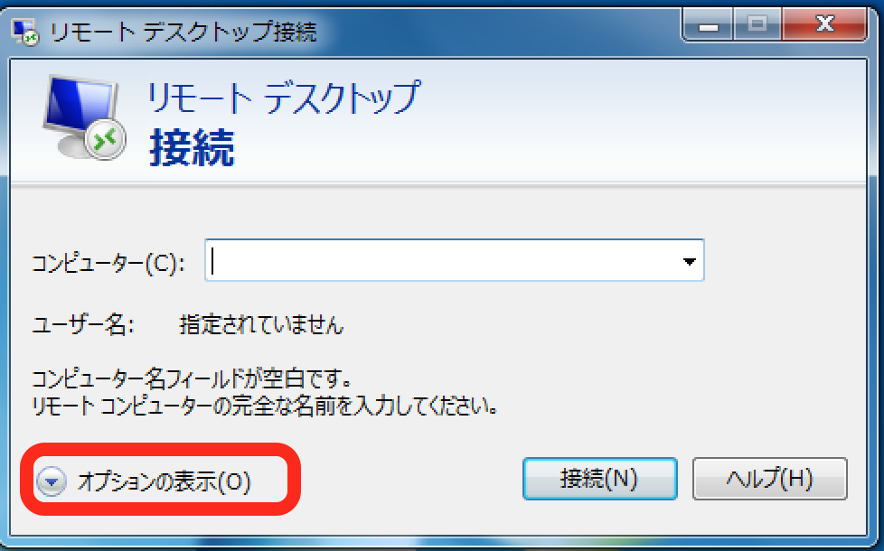 - リモートデスクトップ接続のオプションを開きます。