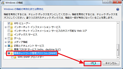 - Simple Network Management Protocol (SNMP)にチェックを入れ、OKをクリックします。