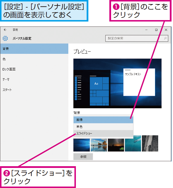 Windowsの設定を使用して壁紙を変更する最も簡単な方法は以下の通りです: