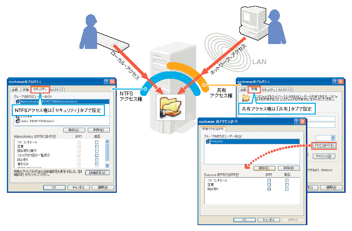 共有フォルダのアクセス権とNTFSアクセス権の違いは?