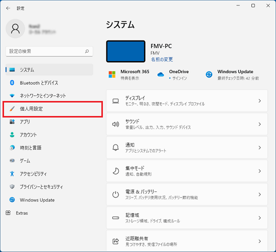 - 「個人用設定」を選択します。