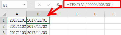 2. 隣接する空のセルで TEXT または DATEVALUE 関数を入力します。