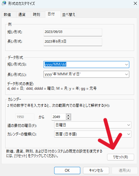 日付の表示形式を変更した後、アプリケーションで正しく表示されない場合の対処法は?