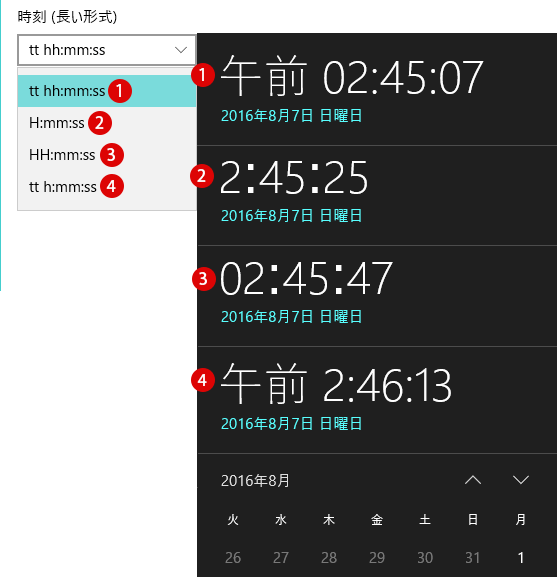 各形式を選択することで、日付の表示を好みに合わせてカスタマイズできます。