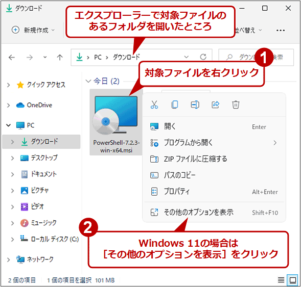 - エクスプローラーでファイルを右クリックし、プロパティを選択します。