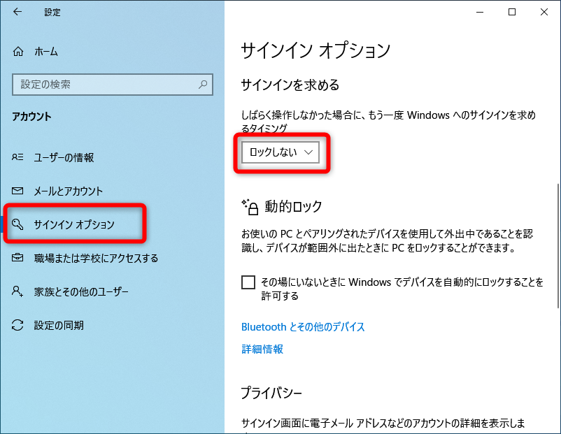 パソコンをロック状態にしないようにするには、以下の手順に従って設定を変更することができます。