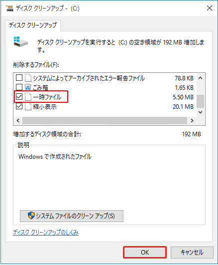 - システムの再起動後に削除: システムの再起動後に一時ファイルを削除することで、大部分のファイルが安全に削除できます。