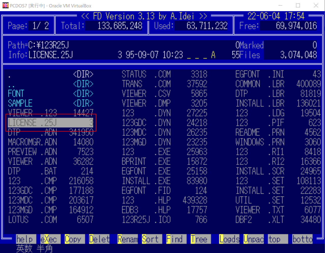 - 仮想マシン上で Lotus 1-2-3 をインストールします。