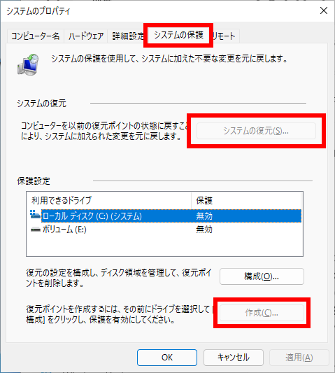 - 最適化: システム保護の設定を定期的に見直し、必要に応じて調整することで、効率的な保護とディスクの管理ができます。