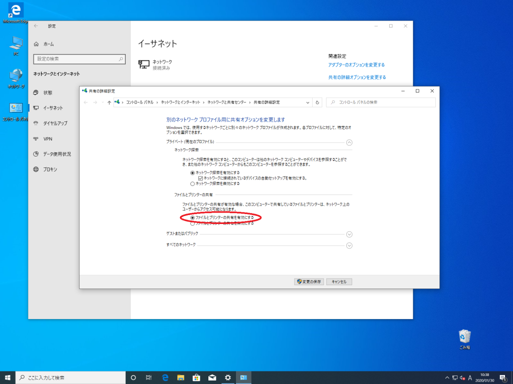 Windows 10 で共有を許可するには次のような手順を実行します:
