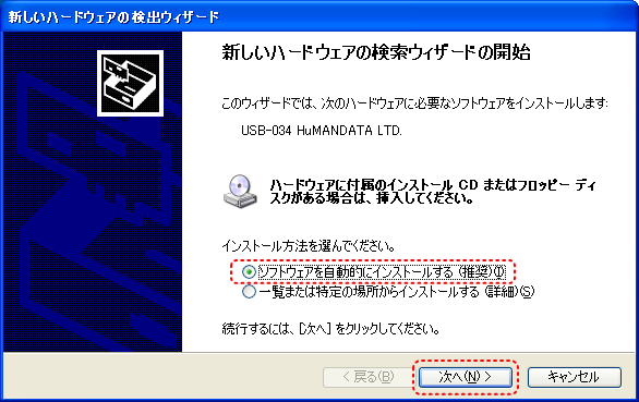 - インストールの最初の画面が表示されたら、「次へ」をクリックします。