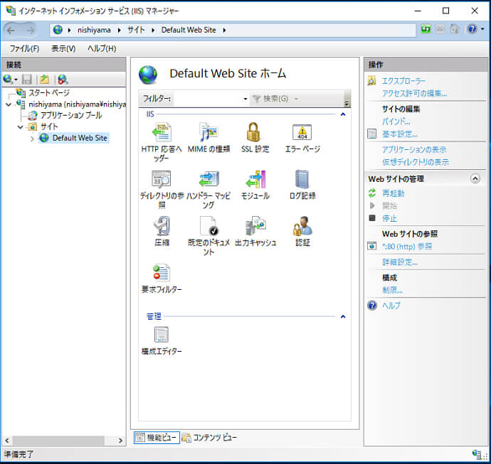 1. [IIS マネージャ] の [サイト] から対象の Web サイトを選択します。