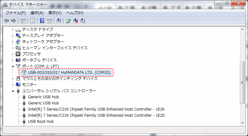- 展開すると、使用可能なCOMポートが一覧で表示されます。各デバイシーのCOMポート番号を確認できます。
